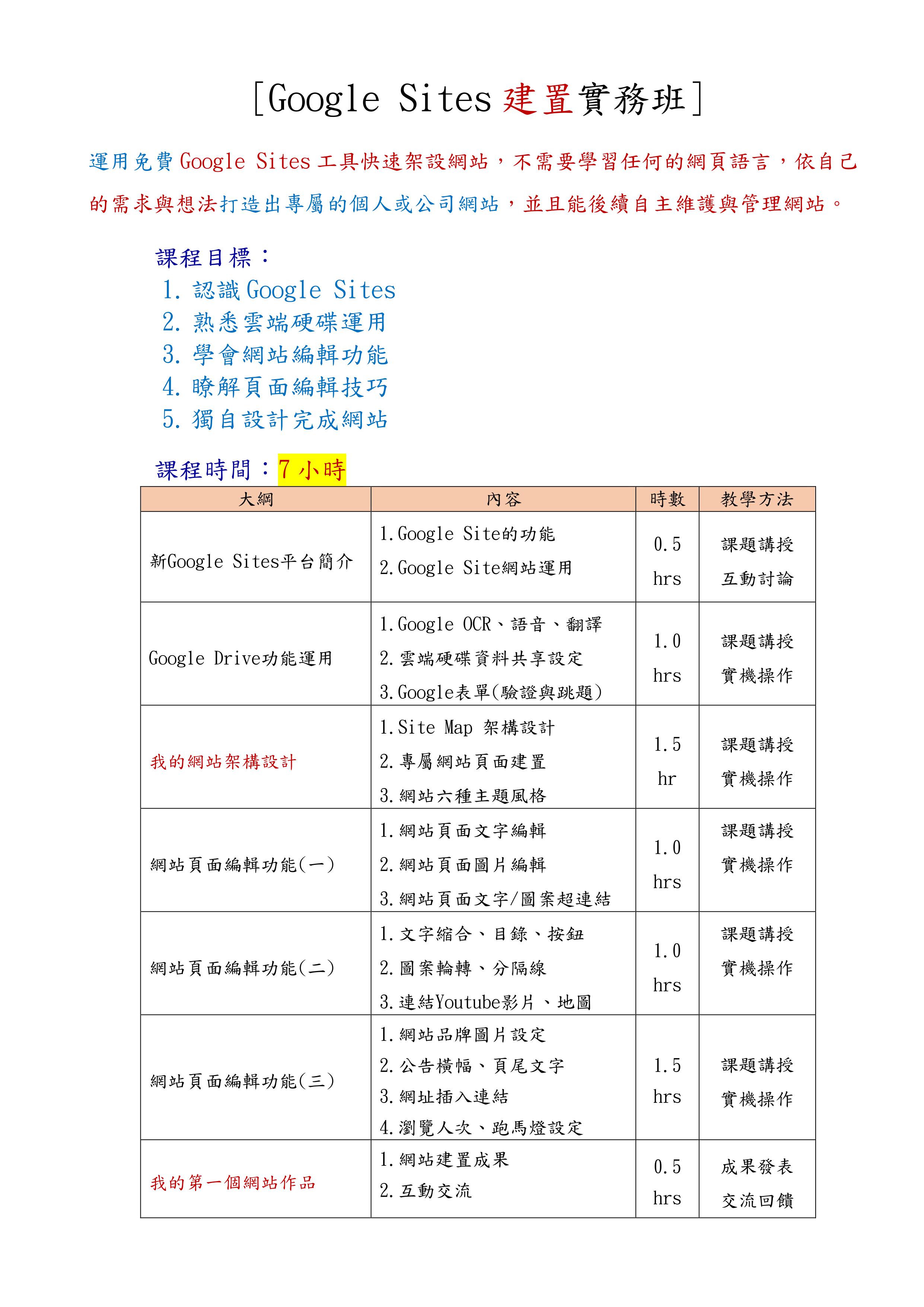 課程主要內容:新GoogleSites簡介